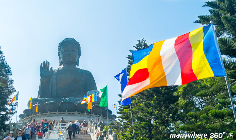 The Tian Tan Buddha 天壇大佛, or The Big Buddha (Hong Kong), is one of Hong Kong’s famous landmarks, located at the peak top on Lantau Island, 482 meters above sea level, and is the tallest open-air bronze seated Buddha in the world, whose construction process lasted 20 years.
