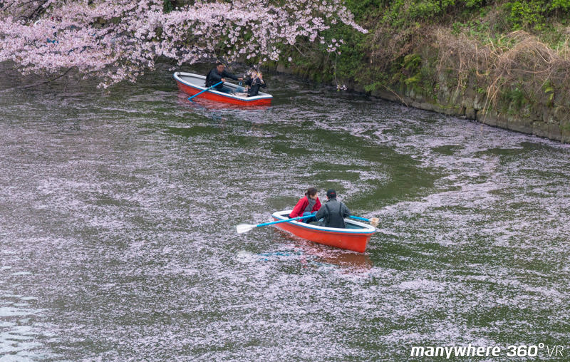 Chidorigafuchi 千鳥ケ淵 is a 400-meter-long Moat outside the Imperial Palace of Tokyo, named because the water resembles a flying bird. The moat is lined with cherry trees, most of them are Somei-Yoshino Cherry and Hill Cherry.
