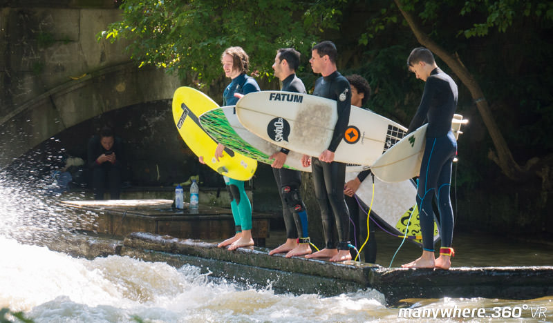 The locals see the English Garden as a great Place for Fitness and Leisure, where people are playing soccer, throwing Frisbees, and flying kites on the big lawn everywhere. They even found a place in the park where the river runs fast enough for River Surfing.