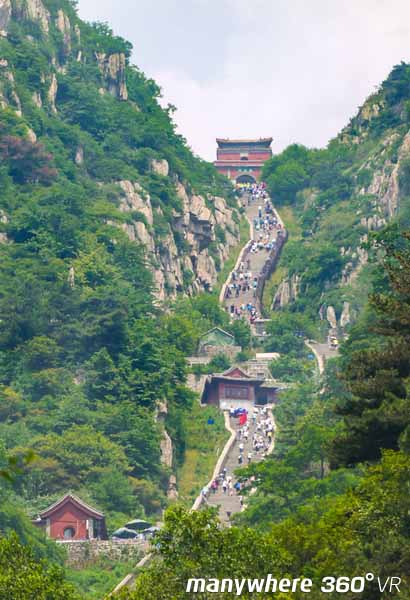 The Daizong Archway (岱宗坊) located on the north side of the Dai Temple is the starting point for ascending Mount Tai, but the real climbing process begins with the steps starting from First Heavenly Gate (Yitianmen 一天门), one kilometer north.