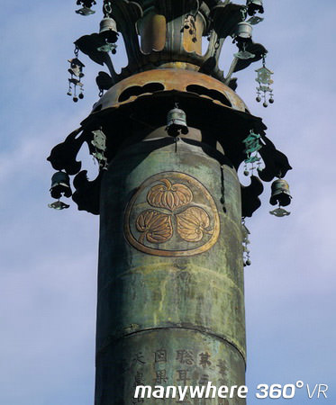 Daigomado 大護摩堂, located behind the Hall of Three Buddhas, houses 30 Buddhism statues, including Five Wisdom Kings, Seven Lucky Gods, and Twelve Devas. The bronze pagoda in front of the hall is called the Sorinto 相輪橖, which is about 15 meters tall and is modeled after the pagoda in Mount Hiei.