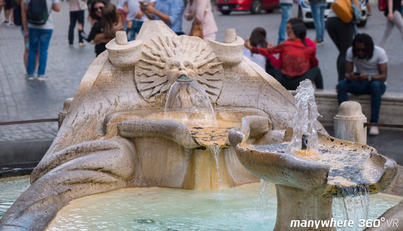 The Fontana della Barcaccia (Fountain of the Boat) in the center of Piazza di Spagna was built in the 17th century and designed by Pietro Bernini, the father of the famous Italian sculptor Gian Lorenzo Bernini. The water first flows into a small half-sunken boat, and then into the pool below from around the boat. It is said that the design of this baroque fountain is inspired by the scene of the flooding of the Tiber River in Rome in 1598.