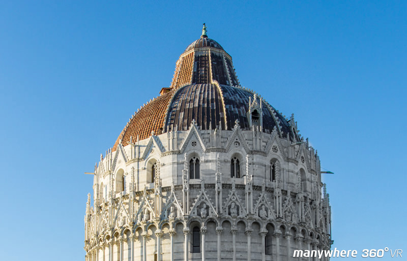 The Pisa Baptistery of St. John is located in front of the Pisa Cathedral and was built in 1152. It is the largest baptistery in Italy, at 55 meters high. The facade is decorated with arcades and Gothic spires, while the octagonal baptismal basin and the carved stone pulpit in the hall are important artistic treasures of the Baptistery.