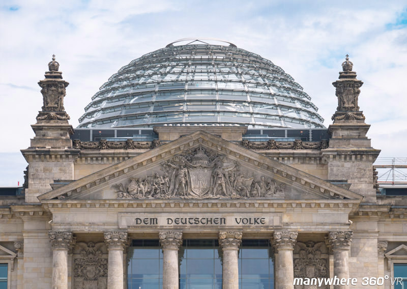 The Reichstag building was built in 1894 and was first owned by the Imperial Diet (Reichstag) of the German Empire. The walls of the building are decorated with the emblems of the states as a symbol of the equality of the states and cities. The iconic slogan Dem Deutschen Volke (To the German People) is also displayed above the main entrance on the west side of the Reichstag.
