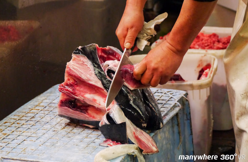 The Tsukiji market is divided into two areas, the inner market and the outer market, and the Tsukiji inner market is mainly for wholesalers in the Tokyo restaurant industry. Every day at 4 or 5 am, people begins their busy work at Tsukiji Inner Market. The tuna auction is one of the highlights of the Tsukiji market, where it is said that one out of every five tuna caught in the world is sent here for auction.