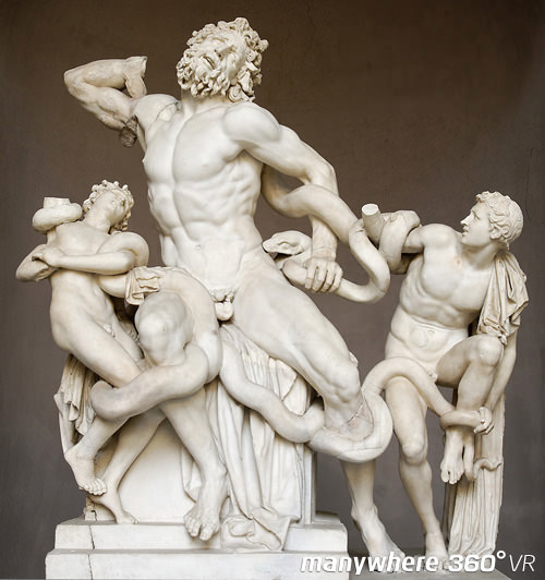 Next to the Gregorian Egyptian Museum is the Pio Clementino Museum, exhibiting Greek and Roman artifacts. It is one of the main galleries of the Vatican Museums and consists of nine exhibition areas. Since the 16th century, The Octagonal Court has been the place where the Pope exhibits his ancient sculpture collection to the world, with statues such as Laocoon and His Sons, Apollo Belvedere, and Perseus. The sculpture Belvedere Torso inside Hall of the Muses (Sala delle Muse) is another treasure of the Vatican Museums.