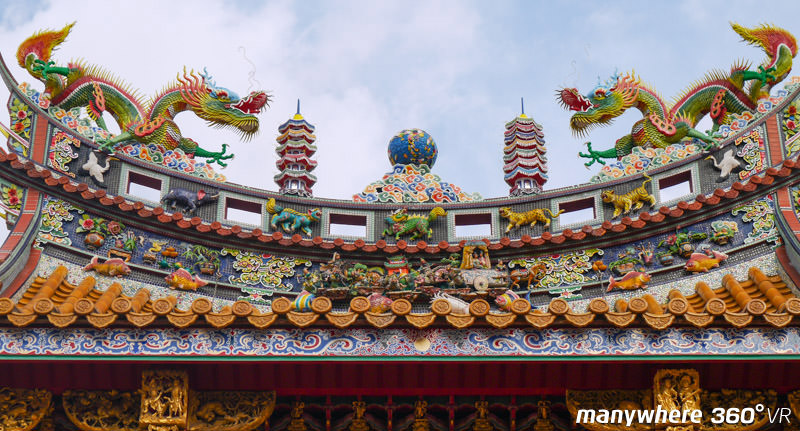 The temple is located in Yokohama Chinatown, it has survived the trials and tribulations of the past 150 years from a small shrine, to become what it is today. The temple was destroyed three times by the Great Kanto Earthquake and fires, the Fourth Reconstruction Was Completed in 1990.